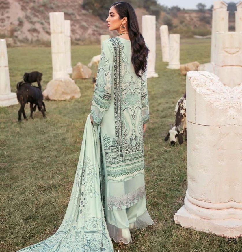 ₨3,500.00Shirt Front Center Panel Embroidered On Slub Lawn Side Kalis Paste Printed on Slub Lawn Plain Dyed Sleeves on Texture Dobby Plain Dyed Back on Texture Dobby Embroidered Daman Border on Organza Sleeves Embroidered Border on Organza Dyed Cambric Pants Woven Jacquard Texture Dupatta Embroidered Pallus On Organza SIZE: Unstitched #pakistaniwear #pakistanicelebrities #pakistaniwedding#mauritiuswedding