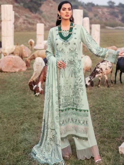 ₨3,800.00This beautiful mint green linen dress has cool combinations of green and white embroidery, enchanted with delicate patterns. The print at the back and dupatta also add to the beauty and give it a magnificent look. This dress looks fresh and lively for these cosy winters. SIZE: L #pakistaniwear #pakistanidesigner #pakistanistreetstyle #designerwear #mauritiuswedding #eidcollection2022