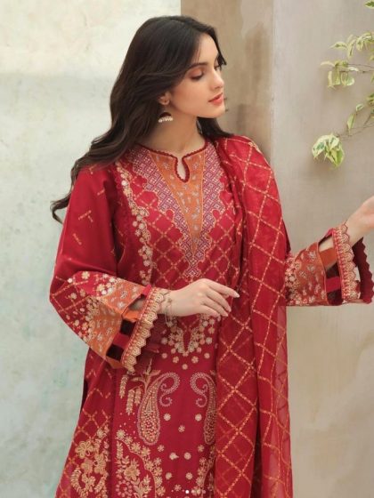 ₨3,850.00This cotton net jacquard collection is available in Small. The suit captures the sophisticated and finesses of sheer composed embroideries making it a timeless elegance. What’s your thoughts about it? Ready to wear 2 pc Size: S