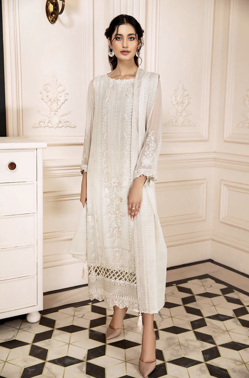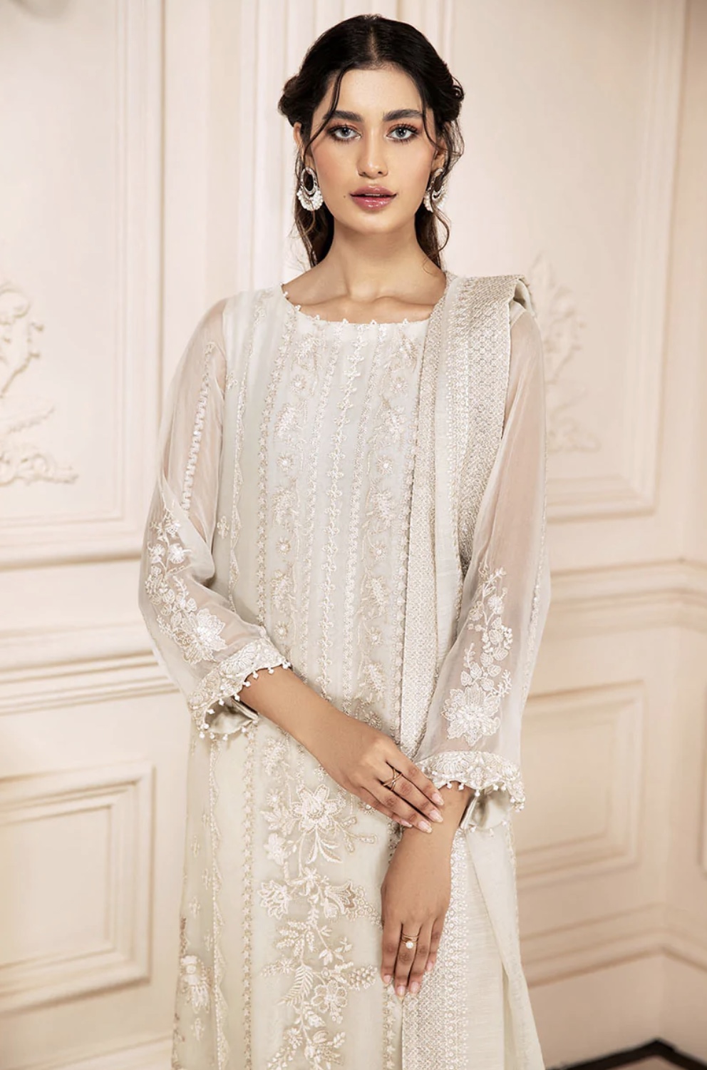 ₨5,000.00Pure Crinkle Chiffon Embroidered Shirt Loom Organza Embroidered Dupatta Raw Silk Trousers Shirt Length 47 Inches SIZE: S Actual color may slightly vary from the image shown.