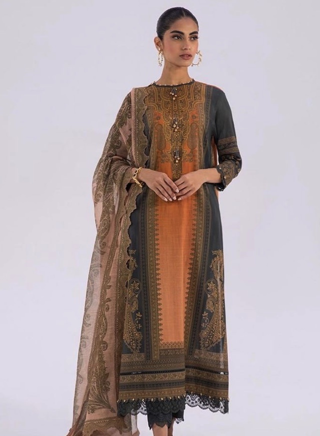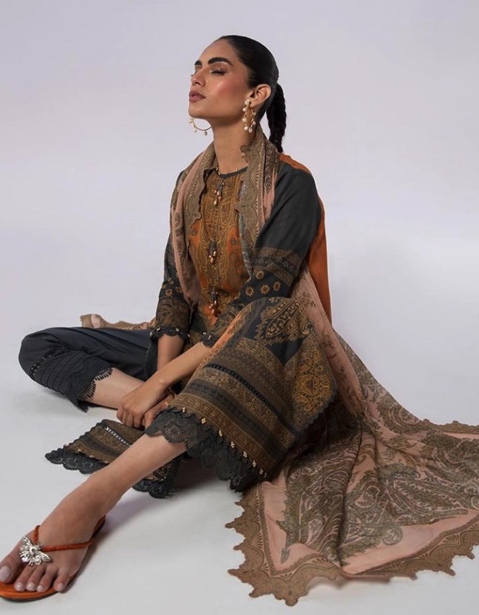 ₨2,100.00An ethnic shirt in shades of charcoal grey and Princeton orange along with a beautiful gold printed paisley. Completed with a pretty cross slub dupatta in contrasting shades of peach and gold and matching pants. Details: • Digital printed Front 1.15mtr Digital Printed Back 1.15mtr - Digital Printed Sleeves 0.75mtr - Dyed Pants 2.5 mtr - Cross Slub Digital Dupatta 2.5 mtr Disclaimer: laces and embellishments are not provided by the designer. SIZE: Unstitched #pakistaniwear #pakistanicelebrities #pakistaniwedding#mauritiuswedding